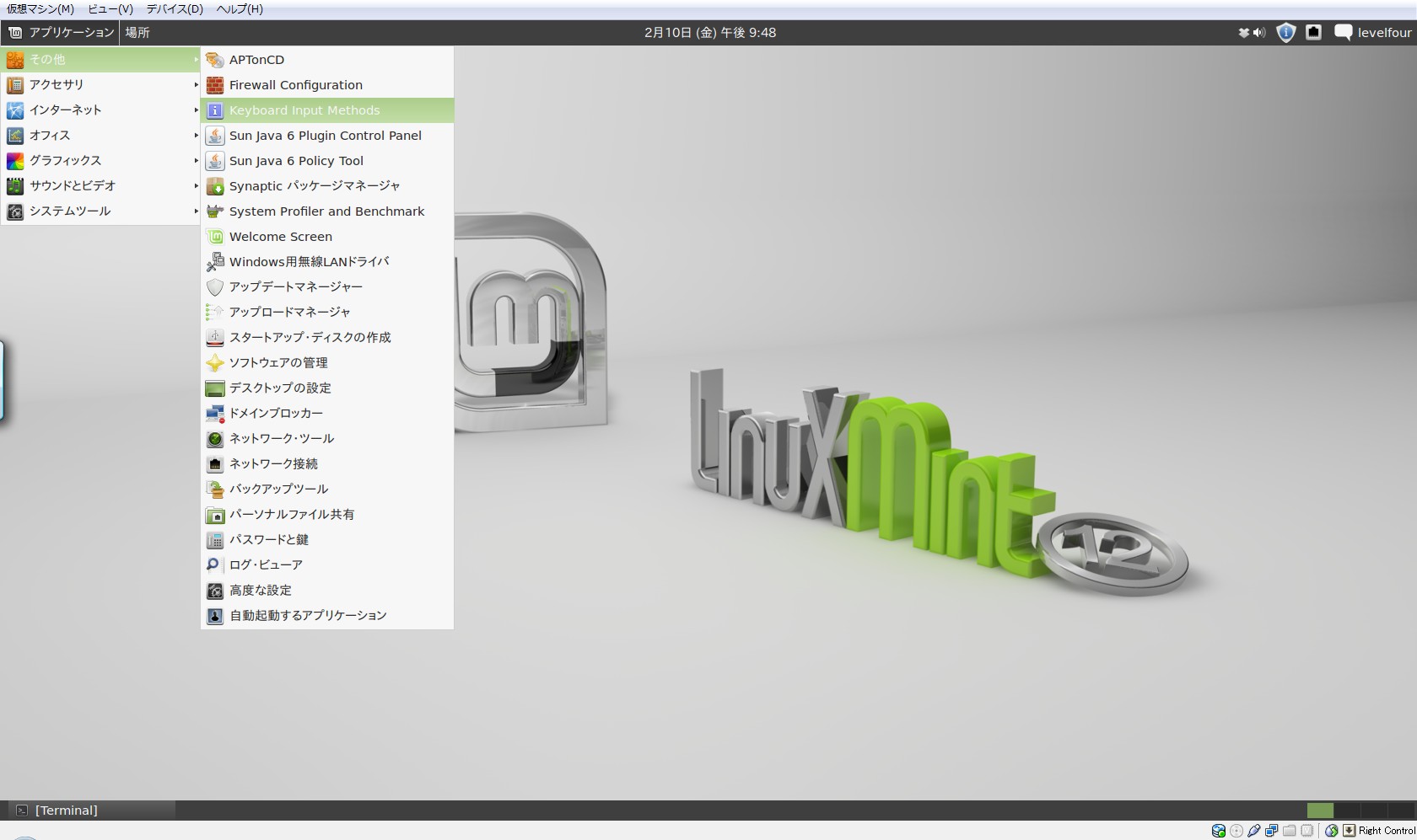 [アプリケーション]->[その他]->[Keyboard Input Methods]を開きます。