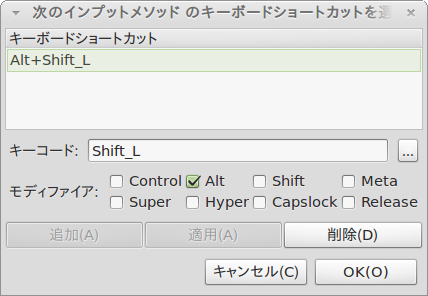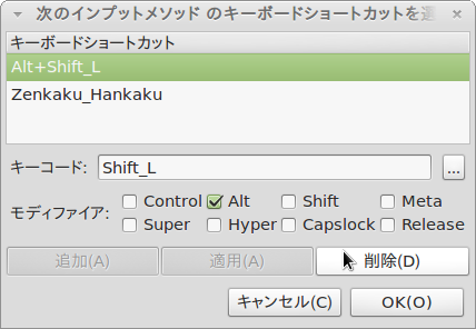 デフォルトのAlt+Shift_Lは不要なので、削除してしまいましょう。