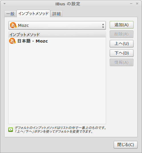 さて、iBusの設定ボックスに戻った後、「インプットメソッド」タブに切り替えます。