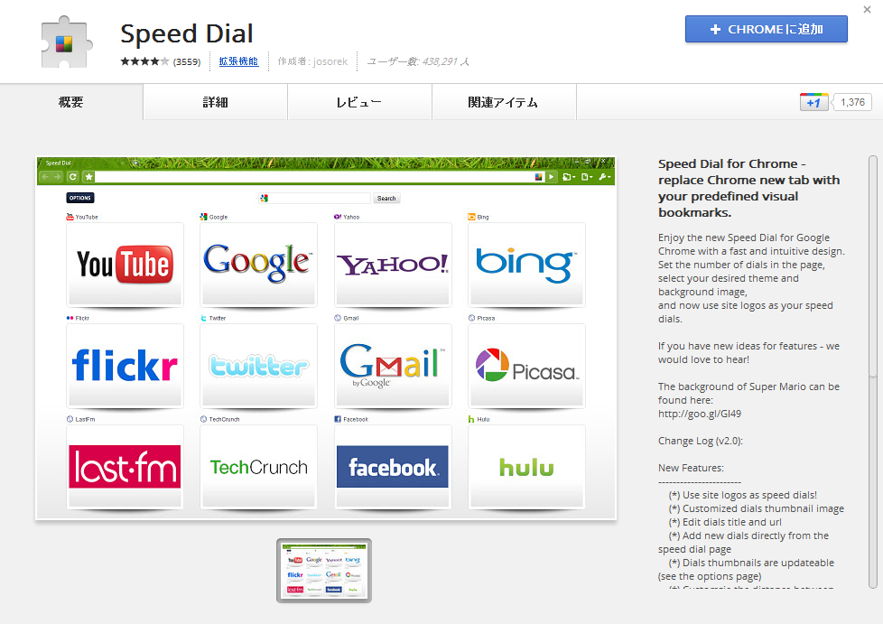 まずはこれ。Speed Dial。Operaで標準だった機能が、他ブラウザに移植されています。