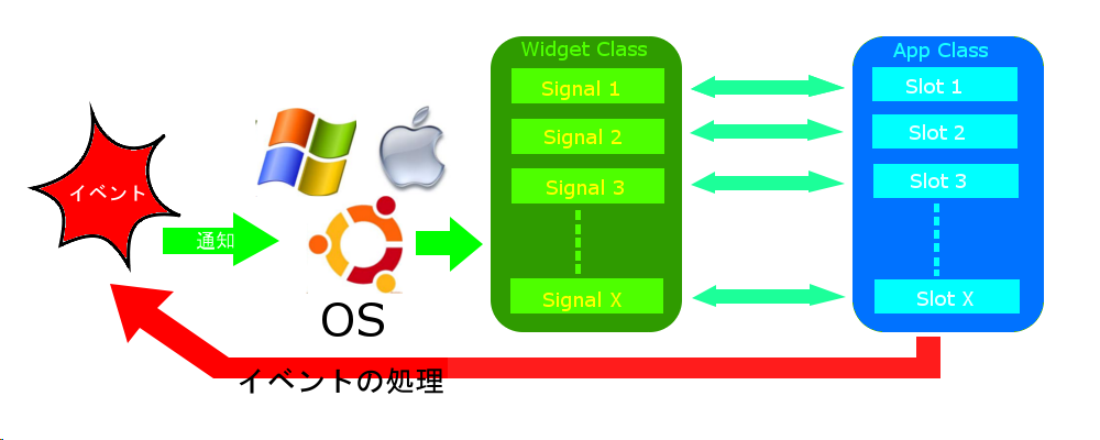 このように、QtはC++のオブジェクト指向を思う存分活かしたプログラミングが