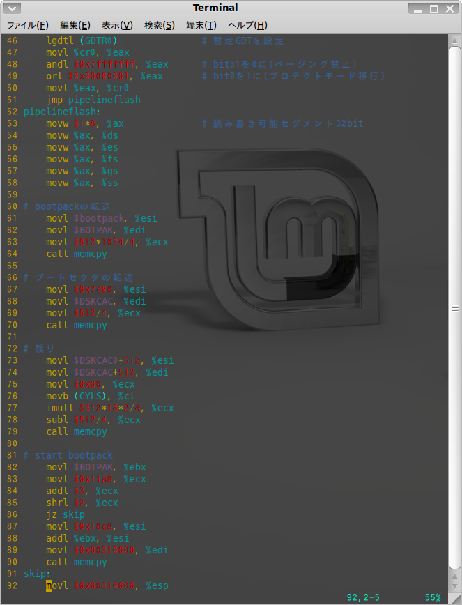 今回は、Vimでアセンブラのソースにシンタックスハイライトをつけよう!という内容です。
