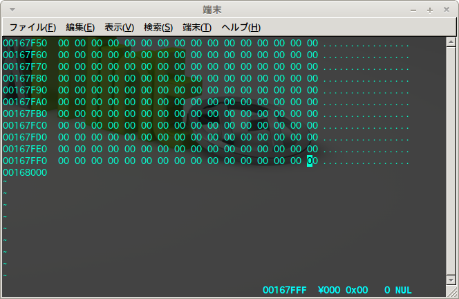 続いて、自作本通り0x168000バイトを手で入力しましょう^^;