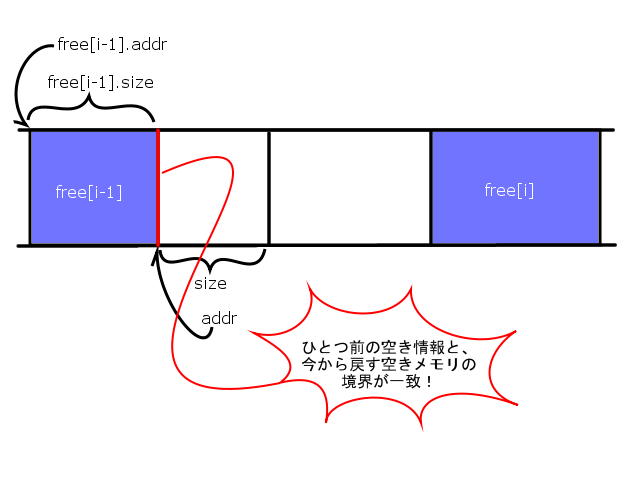 // 解放するメモリをどこに入れるか決める(77~80)